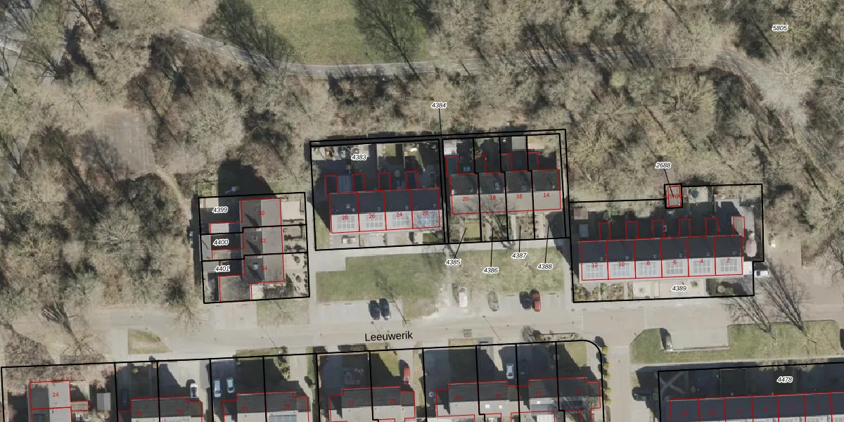 Het perceel waarop Leeuwerik 22 staat heeft een oppervlakte van 750 m². Dit is een groot perceel. De perceeloppervlakte wordt geregistreerd door het Kadaster. Gedetailleerde informatie over de maten van dit perceel kunt u vinden in het rapport Kadastrale kaart met maatvoering van Leeuwerik 22.