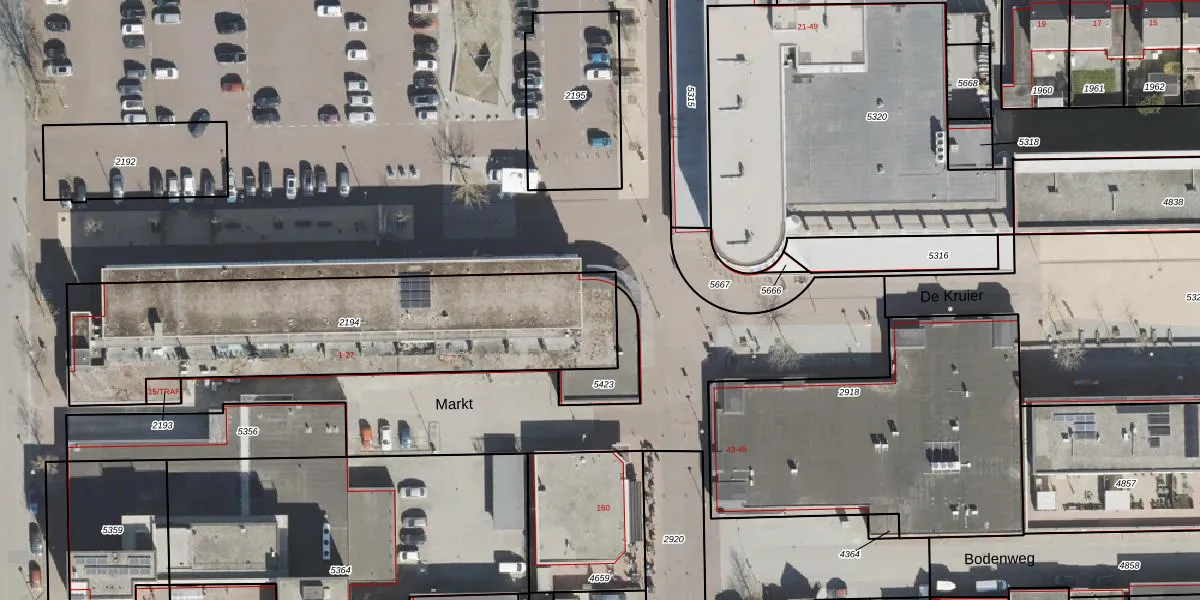 Het perceel waarop Markt 26 staat heeft een oppervlakte van 1528 m². Dit is een zeer groot perceel. De perceeloppervlakte wordt geregistreerd door het Kadaster. Gedetailleerde informatie over de maten van dit perceel kunt u vinden in het rapport Kadastrale kaart met maatvoering van Markt 26.