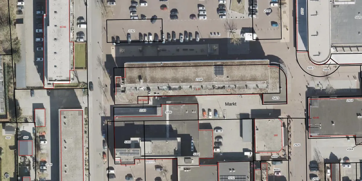 Het perceel waarop Markt 5 staat heeft een oppervlakte van 1528 m². Dit is een zeer groot perceel. De perceeloppervlakte wordt geregistreerd door het Kadaster. Gedetailleerde informatie over de maten van dit perceel kunt u vinden in het rapport Kadastrale kaart met maatvoering van Markt 5.