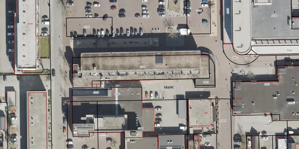 Het perceel waarop Markt 7 staat heeft een oppervlakte van 1528 m². Dit is een zeer groot perceel. De perceeloppervlakte wordt geregistreerd door het Kadaster. Gedetailleerde informatie over de maten van dit perceel kunt u vinden in het rapport Kadastrale kaart met maatvoering van Markt 7.