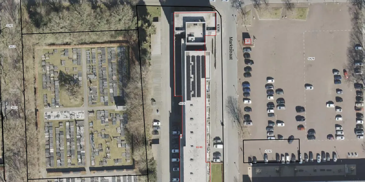 Het perceel waarop Marktstraat 125 staat heeft een oppervlakte van 4840 m². Dit is een zeer groot perceel. De perceeloppervlakte wordt geregistreerd door het Kadaster. Gedetailleerde informatie over de maten van dit perceel kunt u vinden in het rapport Kadastrale kaart met maatvoering van Marktstraat 125.