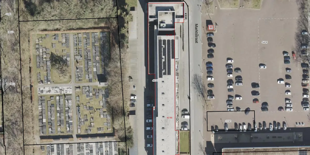 Het perceel waarop Marktstraat 127 staat heeft een oppervlakte van 4840 m². Dit is een zeer groot perceel. De perceeloppervlakte wordt geregistreerd door het Kadaster. Gedetailleerde informatie over de maten van dit perceel kunt u vinden in het rapport Kadastrale kaart met maatvoering van Marktstraat 127.