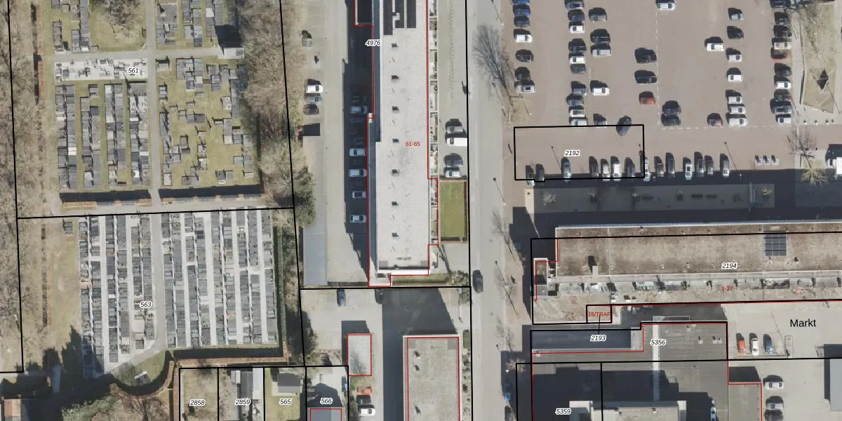 Het perceel waarop Marktstraat 155 staat heeft een oppervlakte van 4840 m². Dit is een zeer groot perceel. De perceeloppervlakte wordt geregistreerd door het Kadaster. Gedetailleerde informatie over de maten van dit perceel kunt u vinden in het rapport Kadastrale kaart met maatvoering van Marktstraat 155.
