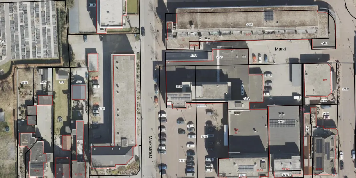 Het perceel waarop Marktstraat 16 staat heeft een oppervlakte van 375 m². Dit is een groot perceel. De perceeloppervlakte wordt geregistreerd door het Kadaster. Gedetailleerde informatie over de maten van dit perceel kunt u vinden in het rapport Kadastrale kaart met maatvoering van Marktstraat 16.