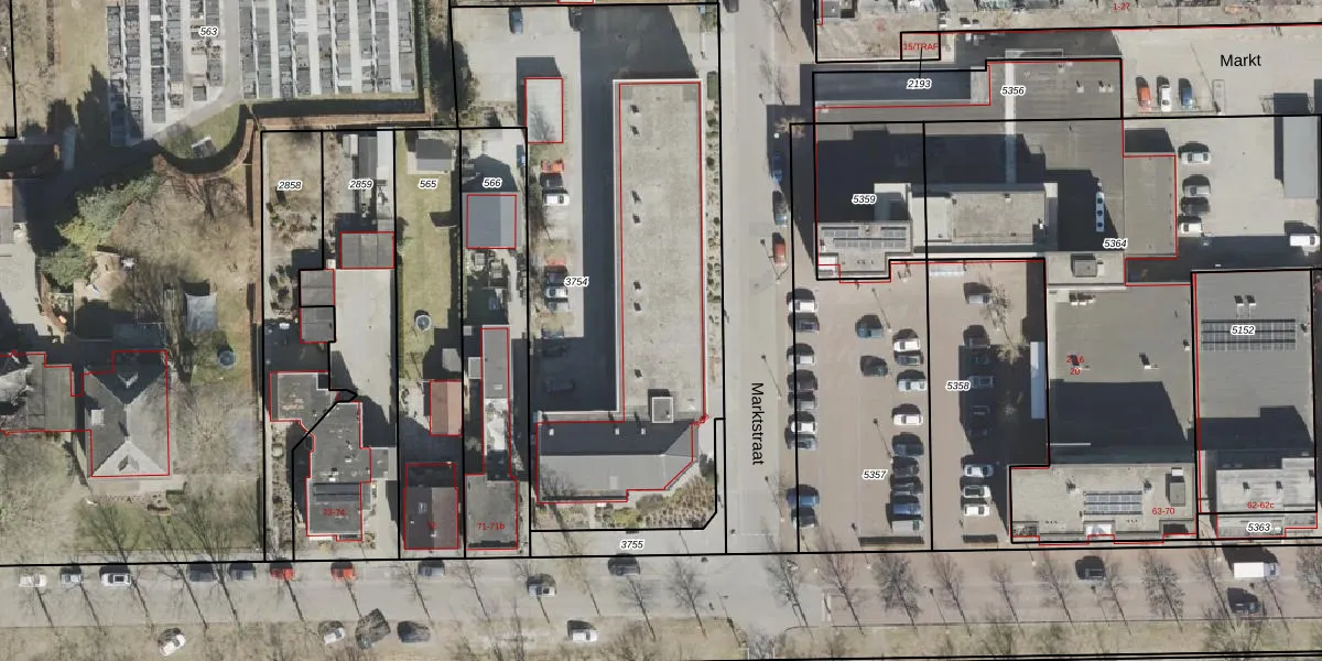 Het perceel waarop Marktstraat 31 staat heeft een oppervlakte van 2507 m². Dit is een zeer groot perceel. De perceeloppervlakte wordt geregistreerd door het Kadaster. Gedetailleerde informatie over de maten van dit perceel kunt u vinden in het rapport Kadastrale kaart met maatvoering van Marktstraat 31.
