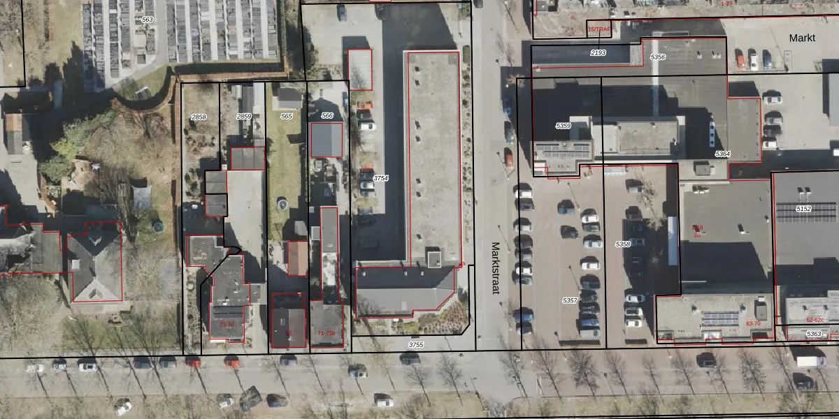 Het perceel waarop Marktstraat 51 staat heeft een oppervlakte van 2507 m². Dit is een zeer groot perceel. De perceeloppervlakte wordt geregistreerd door het Kadaster. Gedetailleerde informatie over de maten van dit perceel kunt u vinden in het rapport Kadastrale kaart met maatvoering van Marktstraat 51.