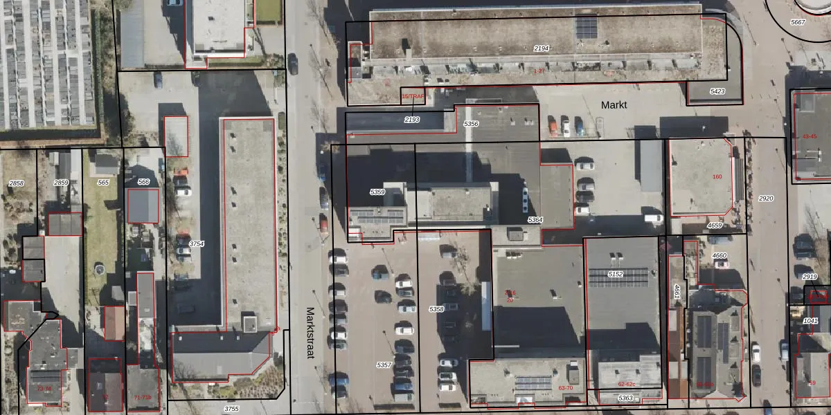 Het perceel waarop Marktstraat 6 staat heeft een oppervlakte van 375 m². Dit is een groot perceel. De perceeloppervlakte wordt geregistreerd door het Kadaster. Gedetailleerde informatie over de maten van dit perceel kunt u vinden in het rapport Kadastrale kaart met maatvoering van Marktstraat 6.