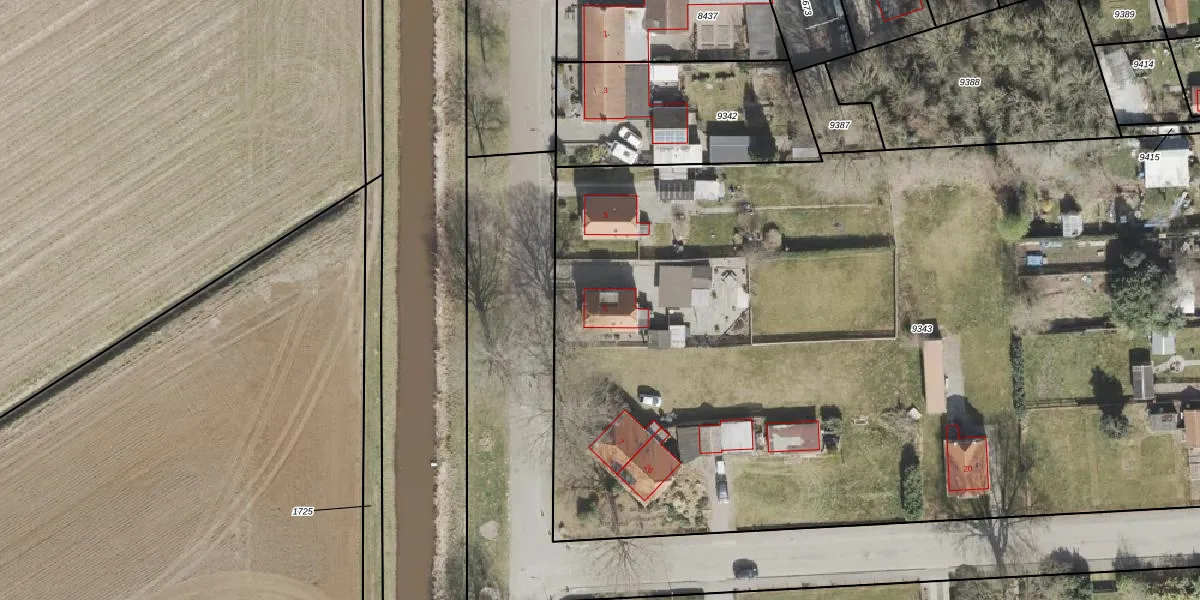 Het adres ligt op het perceel VWD02-H-9343, dat zich in de kadastrale gemeente Vlagtwedde bevindt. Het perceel is kleiner dan gemiddeld in Vlagtwedde. Het perceel is 8341 m² groot, terwijl het gemiddelde ligt op 1,2 ha. De grootste perceeloppervlakte in de kadastrale gemeente is 1,11 km². De kleinste oppervlakte bedraagt 0 m². Op het perceel zijn 9 adressen aanwezig. De laatste wijziging in het de Basisregistratie Kadaster (BRK) was op 18-05-2011.