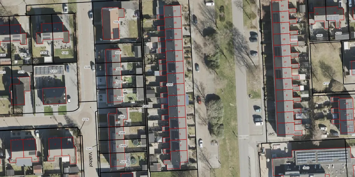 Het adres ligt op het perceel VWD02-I-5495, dat zich in de kadastrale gemeente Vlagtwedde bevindt. Het perceel is kleiner dan gemiddeld in Vlagtwedde. Het perceel is 2596 m² groot, terwijl het gemiddelde ligt op 1,2 ha. Het kleinste perceel in de kadastrale gemeente is 0 m² groot. De grootste perceeloppervlakte is 1,11 km². Op het perceel zijn 14 adressen aanwezig. De huidige grenzen van het perceel zijn digitaal in de Basisregistratie Kadaster (BRK) geregistreerd op 08-10-2018.