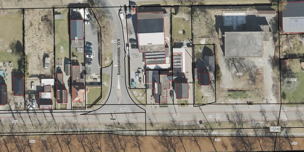 Gebruik de zoekbalk of klik op een perceel voor informatie over de adressen binnen dit perceel.