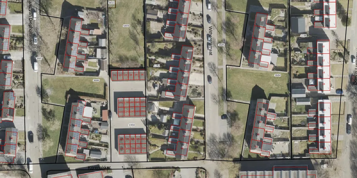 Het perceel waarop Witherenstraat 16 staat heeft een oppervlakte van 3375 m². Dit is een zeer groot perceel. De perceeloppervlakte wordt geregistreerd door het Kadaster. Gedetailleerde informatie over de maten van dit perceel kunt u vinden in het rapport Kadastrale kaart met maatvoering van Witherenstraat 16.