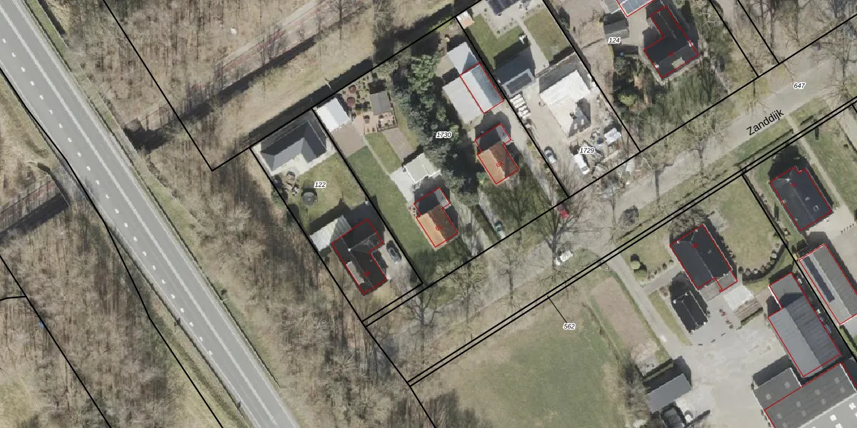 Het perceel waarop Zanddijk 61 staat heeft een oppervlakte van 2000 m². Dit is een zeer groot perceel. De perceeloppervlakte wordt geregistreerd door het Kadaster. Gedetailleerde informatie over de maten van dit perceel kunt u vinden in het rapport Kadastrale kaart met maatvoering van Zanddijk 61.