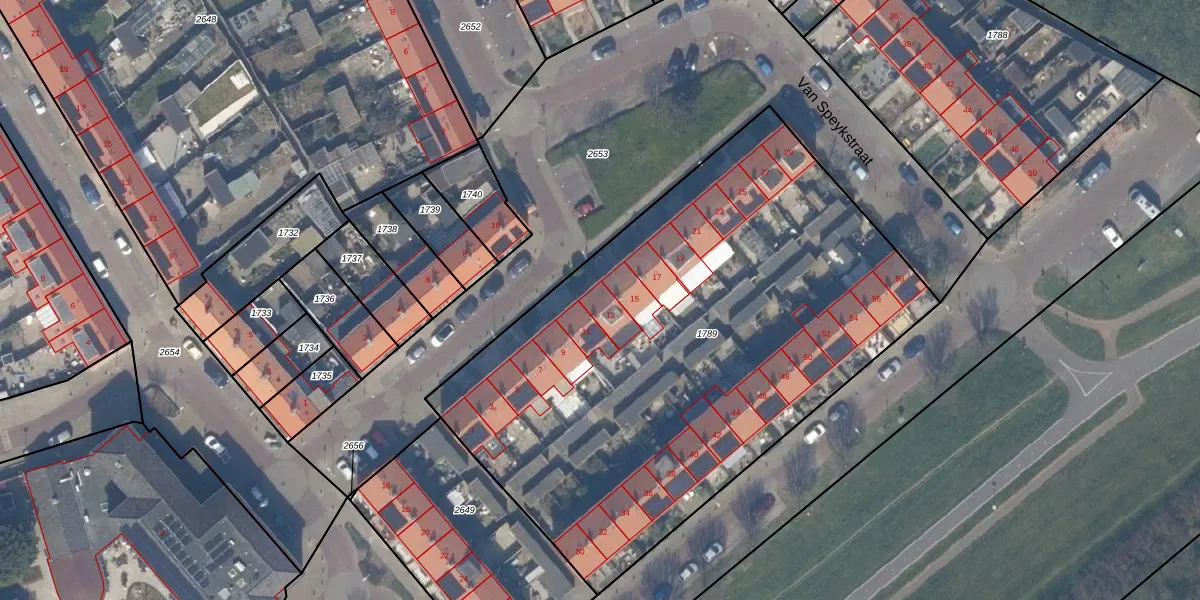 Van Speykstraat 13 is gelegen op kadastraal perceel MSR00F1789. Deze kadastrale aanduiding is uniek en wordt gebruikt door het Kadaster om eigendomsrechten en andere zakelijke rechten vast te leggen. Het perceel maakt onderdeel uit van de kadastrale gemeente Monster.