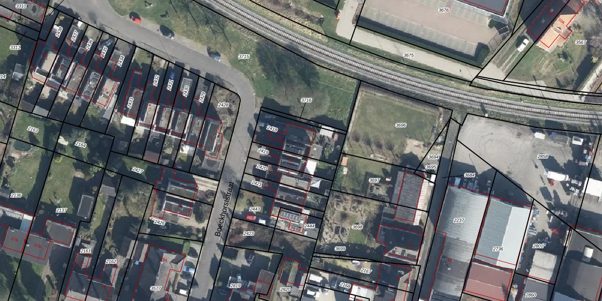 Het perceel waarop Boeckhorststraat 12 staat heeft een oppervlakte van 306 m². Dit is een groot perceel. De perceeloppervlakte wordt geregistreerd door het Kadaster. Gedetailleerde informatie over de maten van dit perceel kunt u vinden in het rapport Kadastrale kaart met maatvoering van Boeckhorststraat 12.