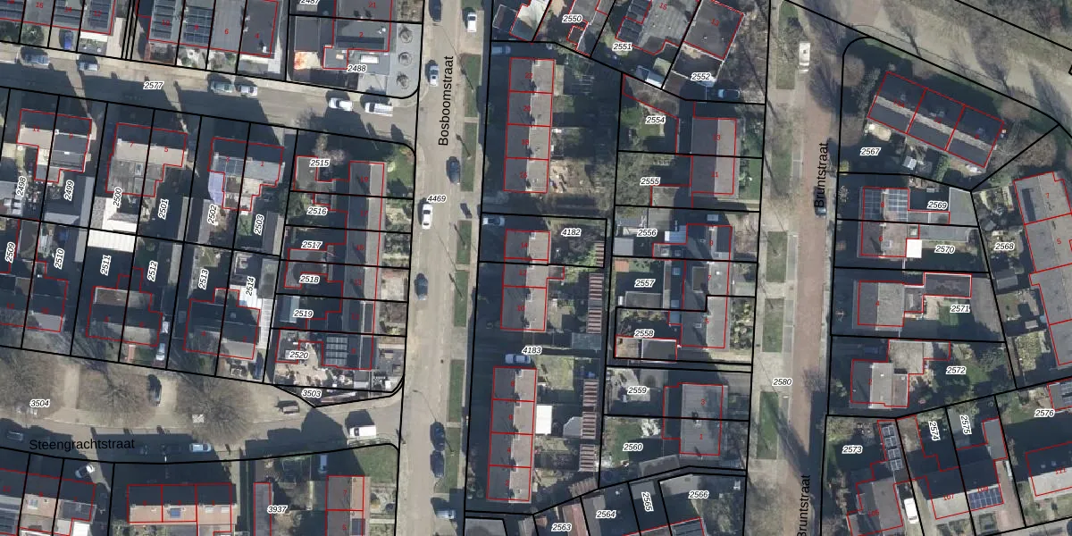 Het perceel waarop Bosboomstraat 12 staat heeft een oppervlakte van 1910 m². Dit is een zeer groot perceel. De perceeloppervlakte wordt geregistreerd door het Kadaster. Gedetailleerde informatie over de maten van dit perceel kunt u vinden in het rapport Kadastrale kaart met maatvoering van Bosboomstraat 12.