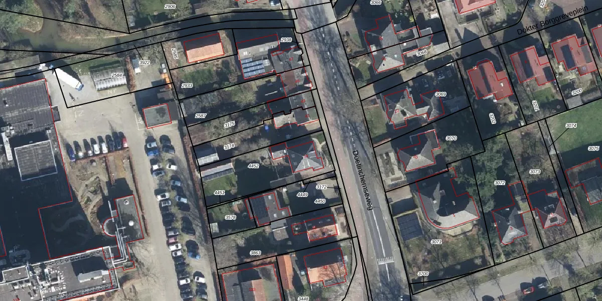 Het perceel waarop Doetinchemseweg 39 staat heeft een oppervlakte van 597 m². Dit is een groot perceel. De perceeloppervlakte wordt geregistreerd door het Kadaster. Gedetailleerde informatie over de maten van dit perceel kunt u vinden in het rapport Kadastrale kaart met maatvoering van Doetinchemseweg 39.