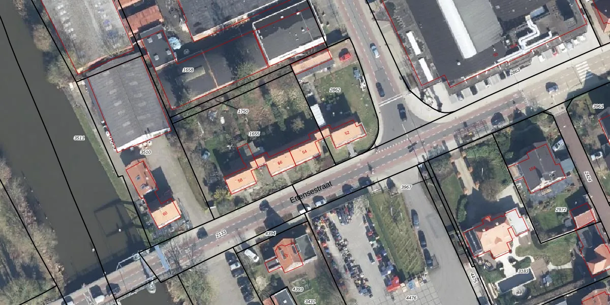 Ettensestraat 54 is gelegen op kadastraal perceel WIS00F1655. Deze kadastrale aanduiding is uniek en wordt gebruikt door het Kadaster om eigendomsrechten en andere zakelijke rechten vast te leggen. Het perceel maakt onderdeel uit van de kadastrale gemeente Wisch.