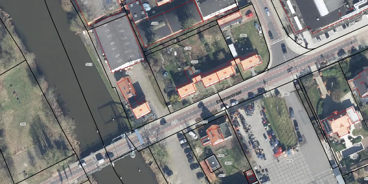 Het perceel waarop Ettensestraat 58 staat heeft een oppervlakte van 1471 m². Dit is een zeer groot perceel. De perceeloppervlakte wordt geregistreerd door het Kadaster. Gedetailleerde informatie over de maten van dit perceel kunt u vinden in het rapport Kadastrale kaart met maatvoering van Ettensestraat 58.