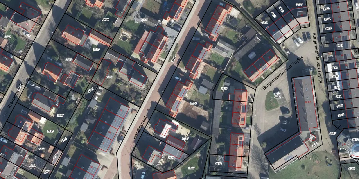 Het perceel waarop Handelstraat 14 staat heeft een oppervlakte van 3330 m². Dit is een zeer groot perceel. De perceeloppervlakte wordt geregistreerd door het Kadaster. Gedetailleerde informatie over de maten van dit perceel kunt u vinden in het rapport Kadastrale kaart met maatvoering van Handelstraat 14.