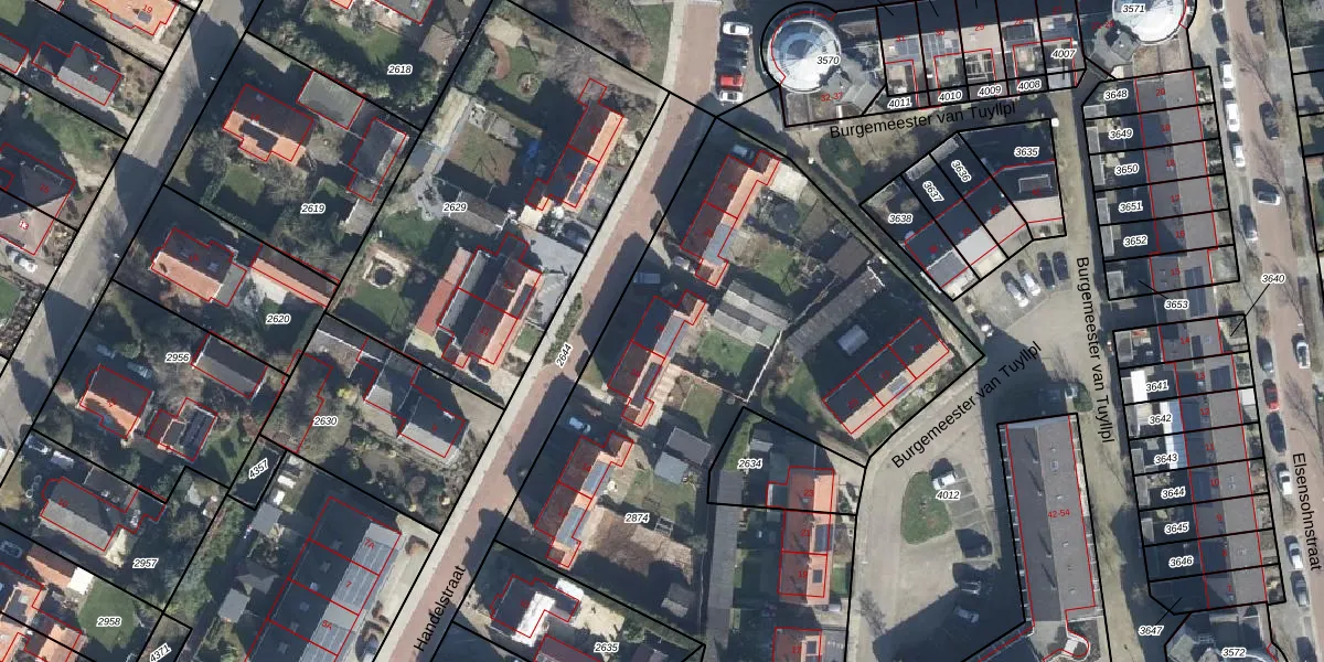 Het perceel waarop Handelstraat 18 staat heeft een oppervlakte van 3330 m². Dit is een zeer groot perceel. De perceeloppervlakte wordt geregistreerd door het Kadaster. Gedetailleerde informatie over de maten van dit perceel kunt u vinden in het rapport Kadastrale kaart met maatvoering van Handelstraat 18.