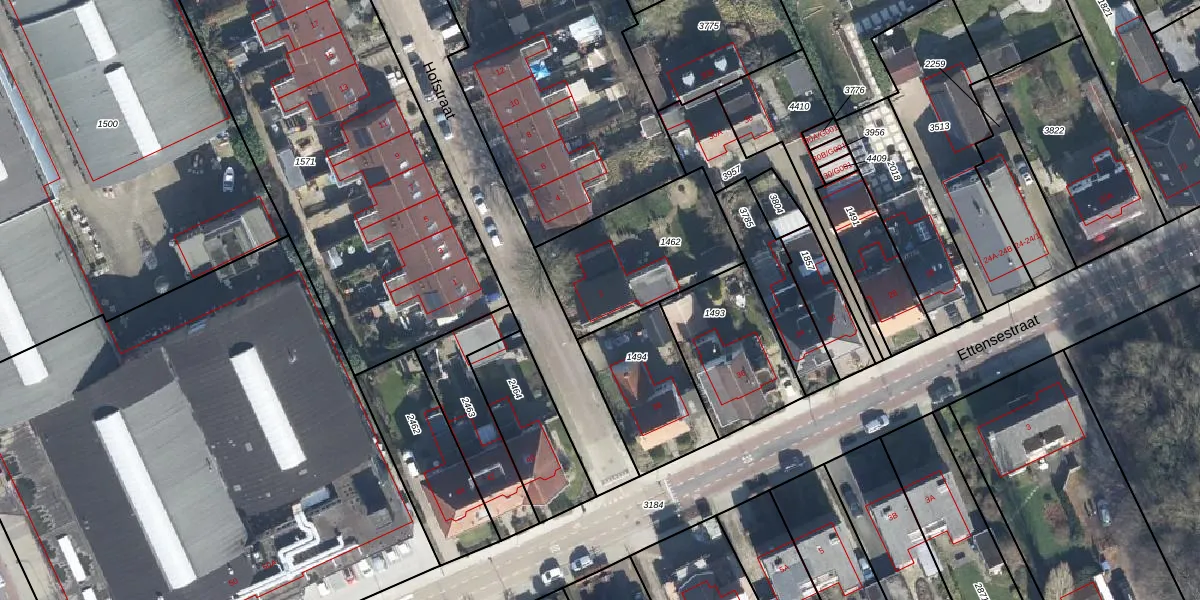 Gebruik de zoekbalk of klik op een perceel voor informatie over de adressen binnen dit perceel.