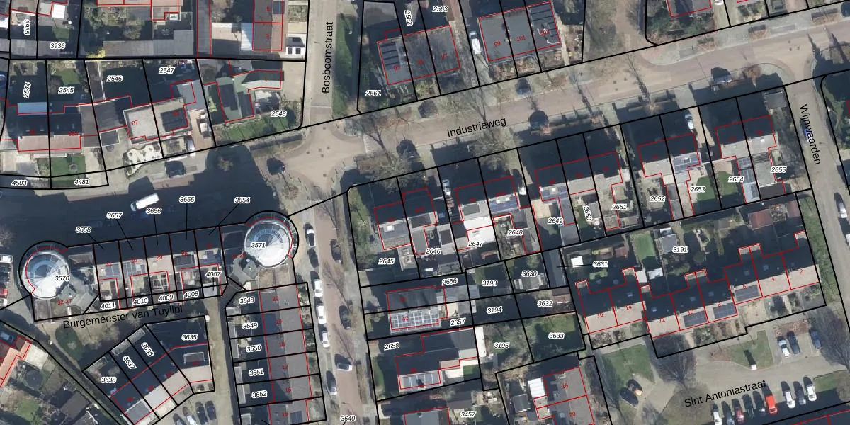 Het perceel waarop Industrieweg 62-A staat heeft een oppervlakte van 248 m². Dit is een middelgroot perceel. De perceeloppervlakte wordt geregistreerd door het Kadaster. Gedetailleerde informatie over de maten van dit perceel kunt u vinden in het rapport Kadastrale kaart met maatvoering van Industrieweg 62-A.