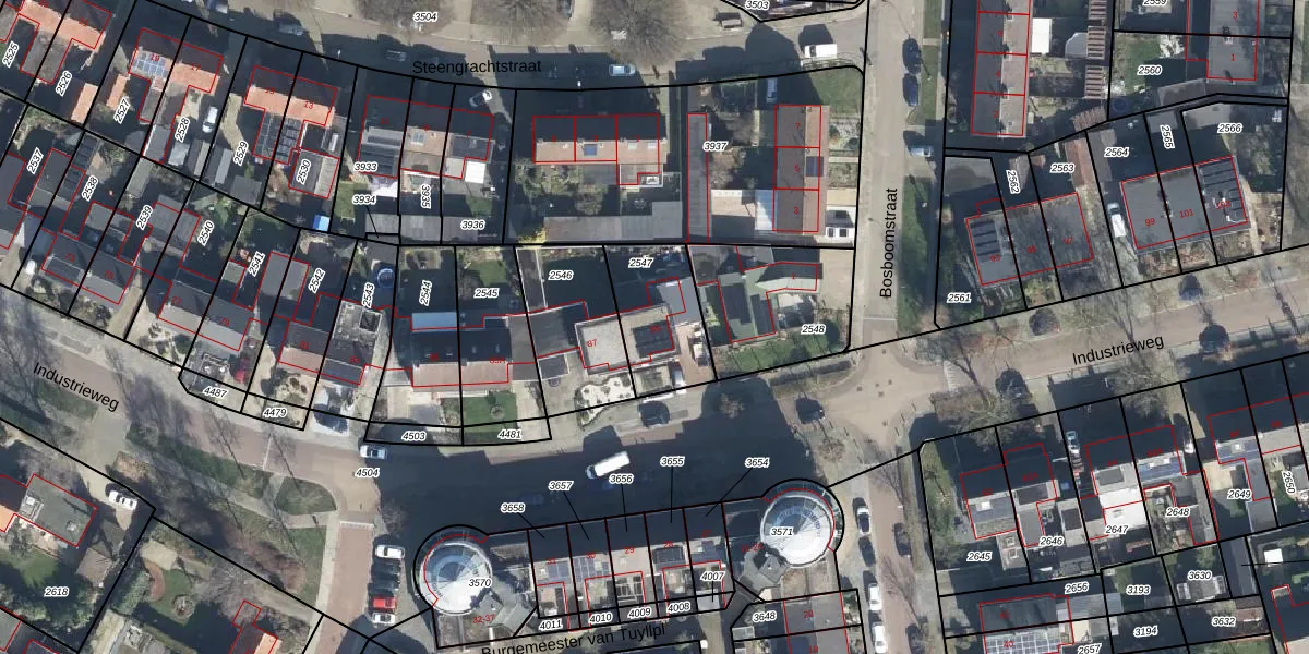 Gebruik de zoekbalk of klik op een perceel voor informatie over de adressen binnen dit perceel.