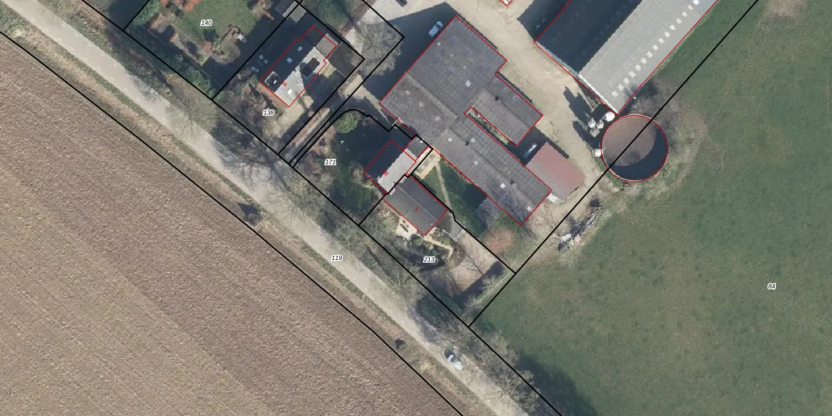 Het adres is gelegen op perceel 213 in de sectie H en de kadastrale gemeente Wisch. De kadastrale aanduiding is aldus WIS00-H-213. Het perceel is 600 m² groot. Dat is kleiner dan de gemiddelde perceeloppervlakte in Wisch, dat op 3146,48 m² ligt. De grootste perceeloppervlakte in de kadastrale gemeente is 26,7 ha. De kleinste oppervlakte bedraagt 0 m². Er zijn geen andere adressen aanwezig op het perceel. De huidige grenzen van het perceel zijn digitaal in de Basisregistratie Kadaster (BRK) geregistreerd op 22-02-2013.