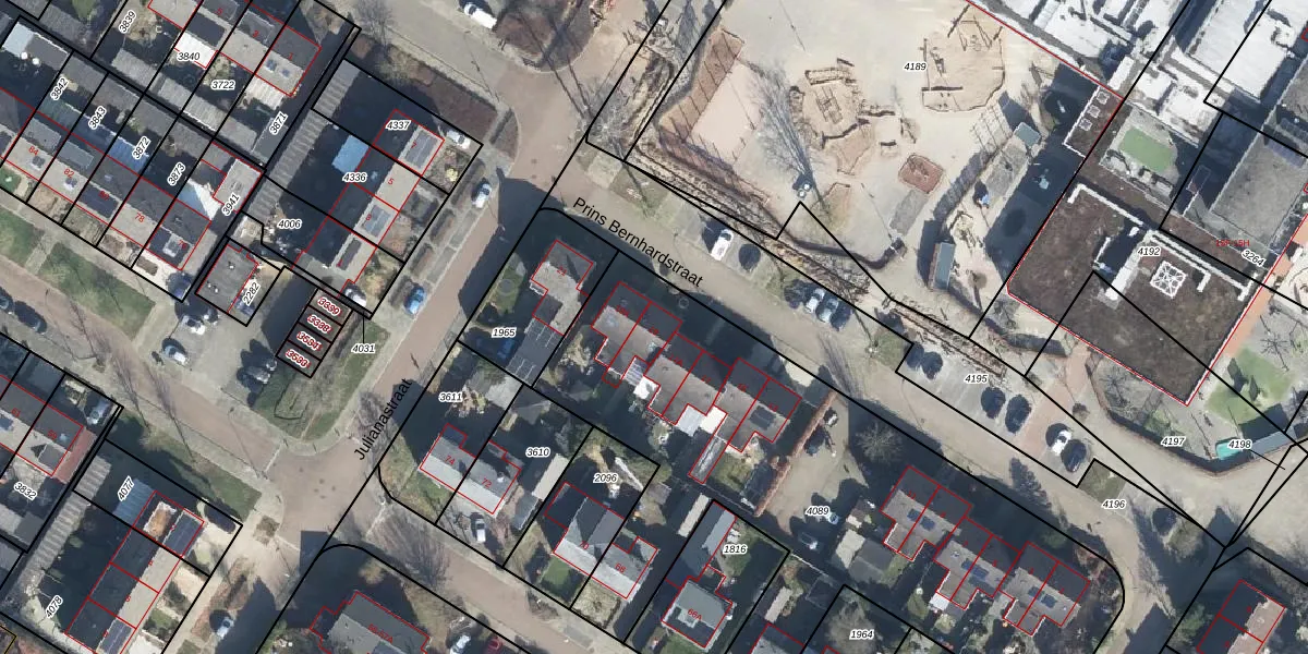 Het perceel waarop Prins Bernhardstraat 19 staat heeft een oppervlakte van 3152 m². Dit is een zeer groot perceel. De perceeloppervlakte wordt geregistreerd door het Kadaster. Gedetailleerde informatie over de maten van dit perceel kunt u vinden in het rapport Kadastrale kaart met maatvoering van Prins Bernhardstraat 19.