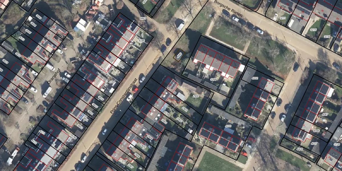 Het perceel waarop Prins Constantijnstraat 104 staat heeft een oppervlakte van 425 m². Dit is een groot perceel. De perceeloppervlakte wordt geregistreerd door het Kadaster. Gedetailleerde informatie over de maten van dit perceel kunt u vinden in het rapport Kadastrale kaart met maatvoering van Prins Constantijnstraat 104.