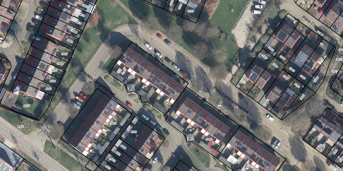 Het perceel waarop Prins Constantijnstraat 28 staat heeft een oppervlakte van 948 m². Dit is een groot perceel. De perceeloppervlakte wordt geregistreerd door het Kadaster. Gedetailleerde informatie over de maten van dit perceel kunt u vinden in het rapport Kadastrale kaart met maatvoering van Prins Constantijnstraat 28.