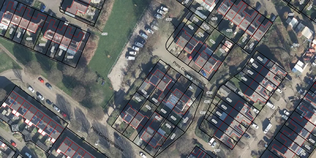 Het perceel waarop Prins Constantijnstraat 9 staat heeft een oppervlakte van 216 m². Dit is een middelgroot perceel. De perceeloppervlakte wordt geregistreerd door het Kadaster. Gedetailleerde informatie over de maten van dit perceel kunt u vinden in het rapport Kadastrale kaart met maatvoering van Prins Constantijnstraat 9.