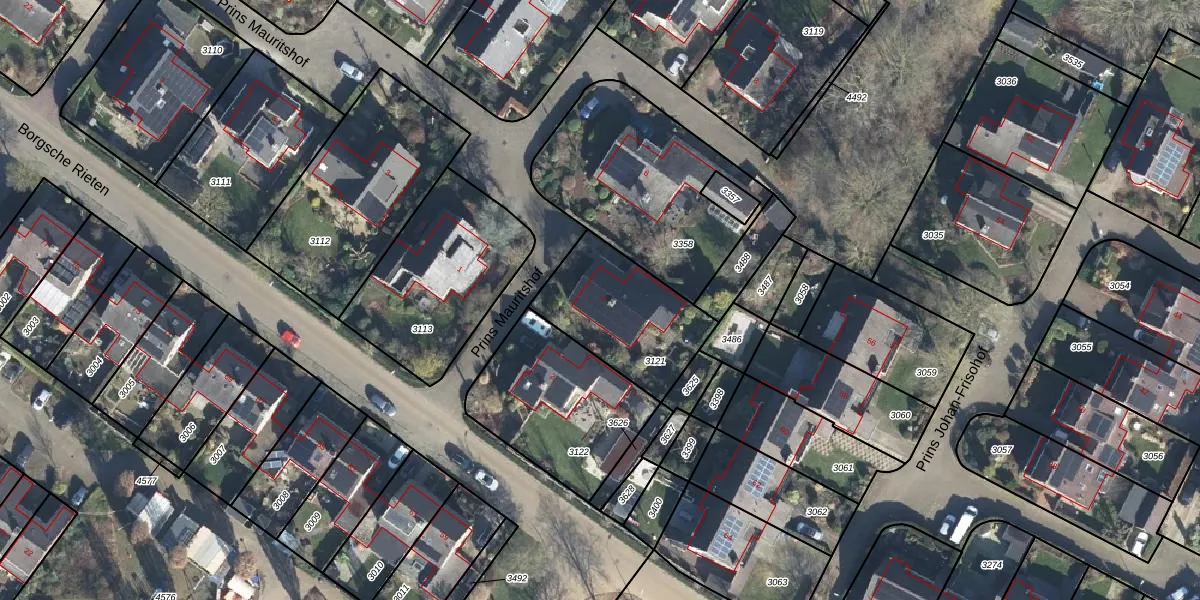 Het perceel waarop Prins Mauritshof 4 staat heeft een oppervlakte van 446 m². Dit is een groot perceel. De perceeloppervlakte wordt geregistreerd door het Kadaster. Gedetailleerde informatie over de maten van dit perceel kunt u vinden in het rapport Kadastrale kaart met maatvoering van Prins Mauritshof 4.