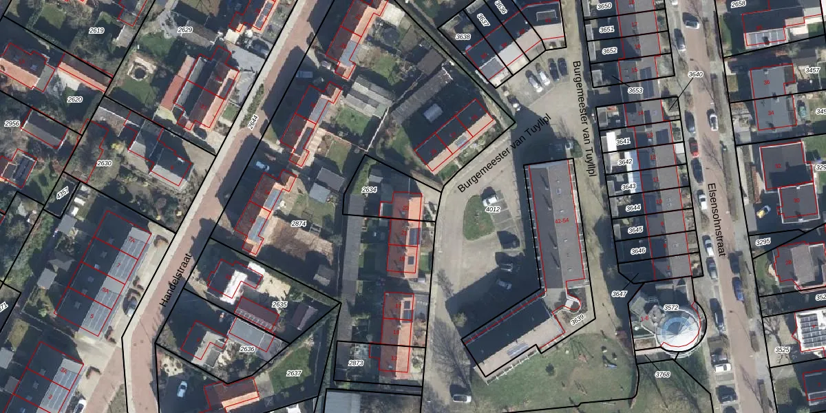 Gebruik de zoekbalk of klik op een perceel voor informatie over de adressen binnen dit perceel.