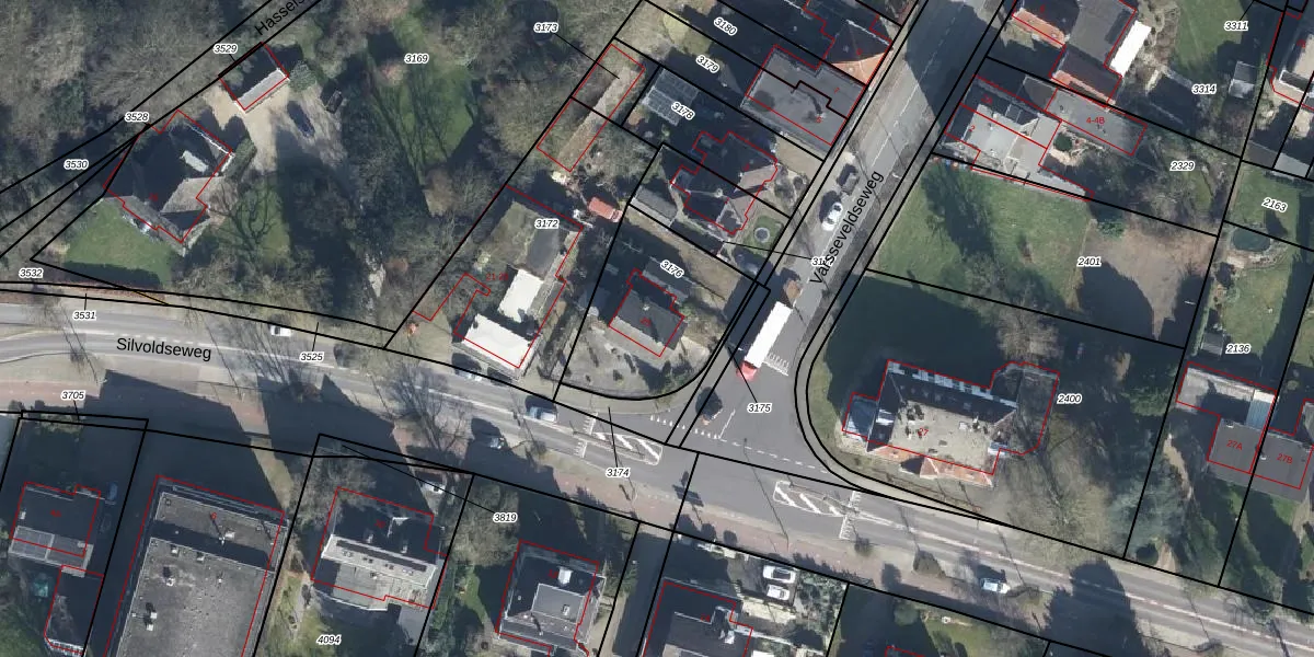 Gebruik de zoekbalk of klik op een perceel voor informatie over de adressen binnen dit perceel.
