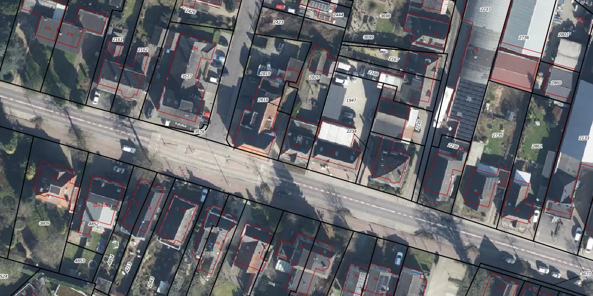 Gebruik de zoekbalk of klik op een perceel voor informatie over de adressen binnen dit perceel.