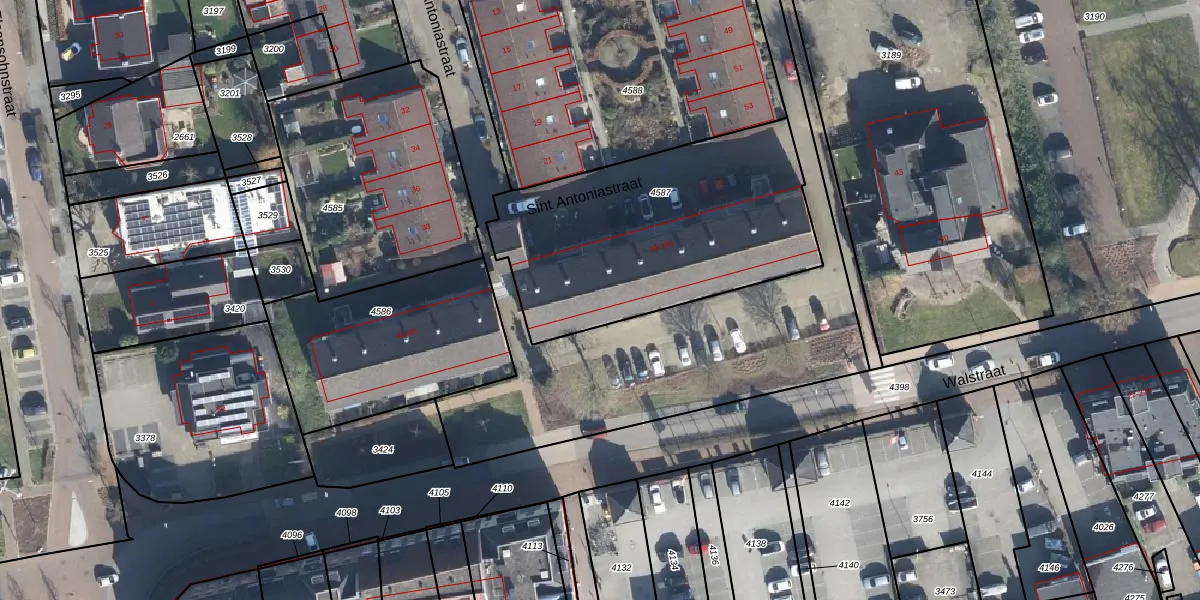 Sint Antoniastraat 94 is gelegen op kadastraal perceel WIS00F4587. Deze kadastrale aanduiding is uniek en wordt gebruikt door het Kadaster om eigendomsrechten en andere zakelijke rechten vast te leggen. Het perceel maakt onderdeel uit van de kadastrale gemeente Wisch.