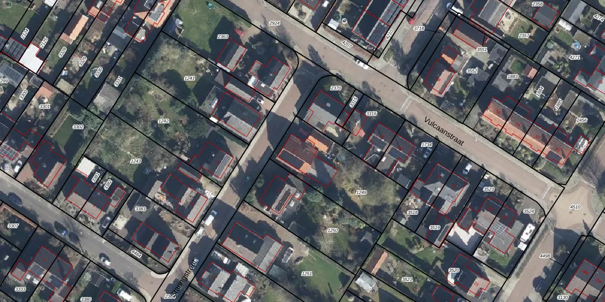 Gebruik de zoekbalk of klik op een perceel voor informatie over de adressen binnen dit perceel.