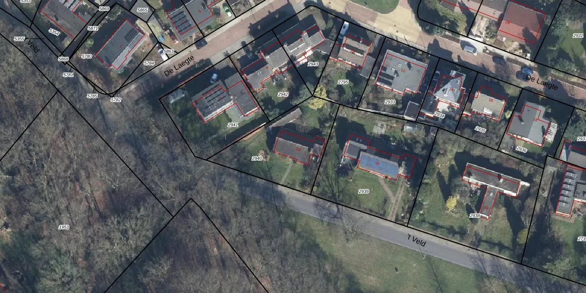 't Veld 29 is gelegen op kadastraal perceel WIS00E2940. Deze kadastrale aanduiding is uniek en wordt gebruikt door het Kadaster om eigendomsrechten en andere zakelijke rechten vast te leggen. Het perceel maakt onderdeel uit van de kadastrale gemeente Wisch.