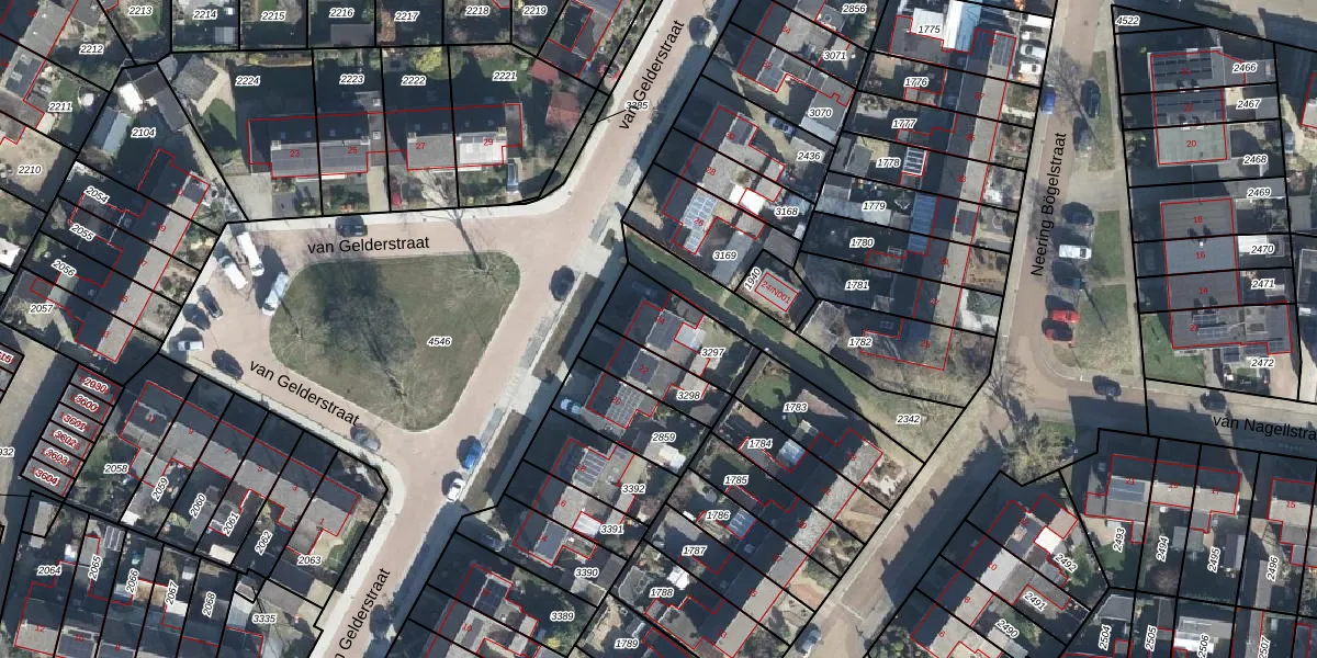 Het perceel waarop van Gelderstraat 24 staat heeft een oppervlakte van 220 m². Dit is een middelgroot perceel. De perceeloppervlakte wordt geregistreerd door het Kadaster. Gedetailleerde informatie over de maten van dit perceel kunt u vinden in het rapport Kadastrale kaart met maatvoering van van Gelderstraat 24.