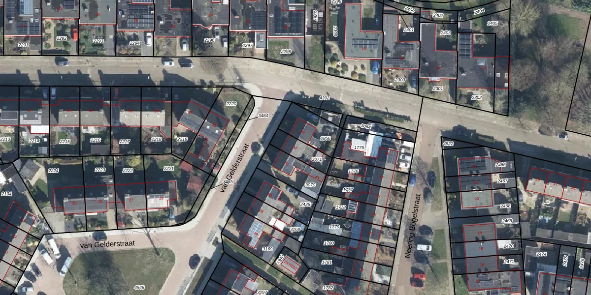 Gebruik de zoekbalk of klik op een perceel voor informatie over de adressen binnen dit perceel.