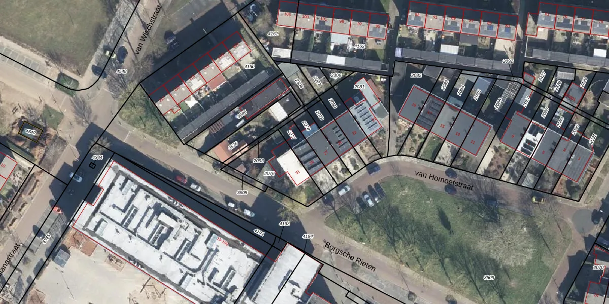 van Homoetstraat 29 is gelegen op kadastraal perceel WIS00F2077. Deze kadastrale aanduiding is uniek en wordt gebruikt door het Kadaster om eigendomsrechten en andere zakelijke rechten vast te leggen. Het perceel maakt onderdeel uit van de kadastrale gemeente Wisch.