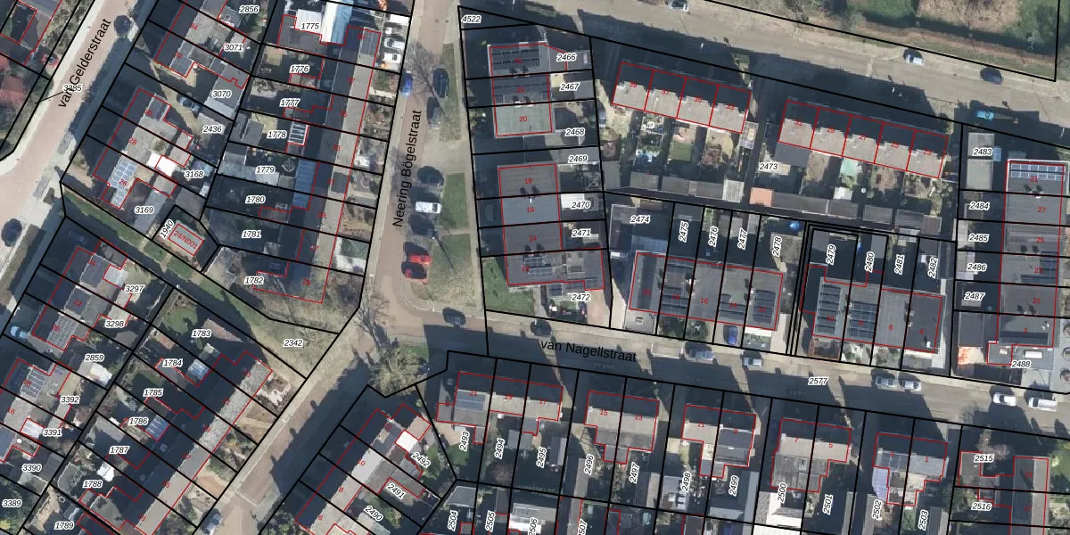 Gebruik de zoekbalk of klik op een perceel voor informatie over de adressen binnen dit perceel.