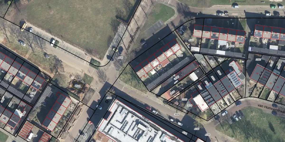 van Wischstraat 117 is gelegen op kadastraal perceel WIS00F4160. Deze kadastrale aanduiding is uniek en wordt gebruikt door het Kadaster om eigendomsrechten en andere zakelijke rechten vast te leggen. Het perceel maakt onderdeel uit van de kadastrale gemeente Wisch.