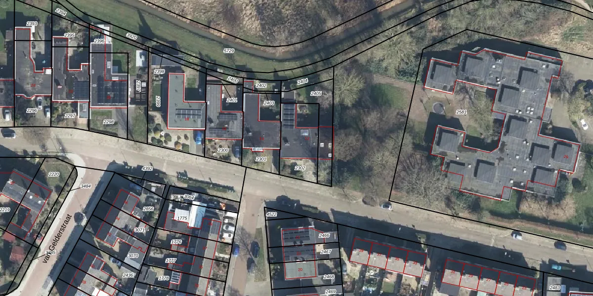 Gebruik de zoekbalk of klik op een perceel voor informatie over de adressen binnen dit perceel.