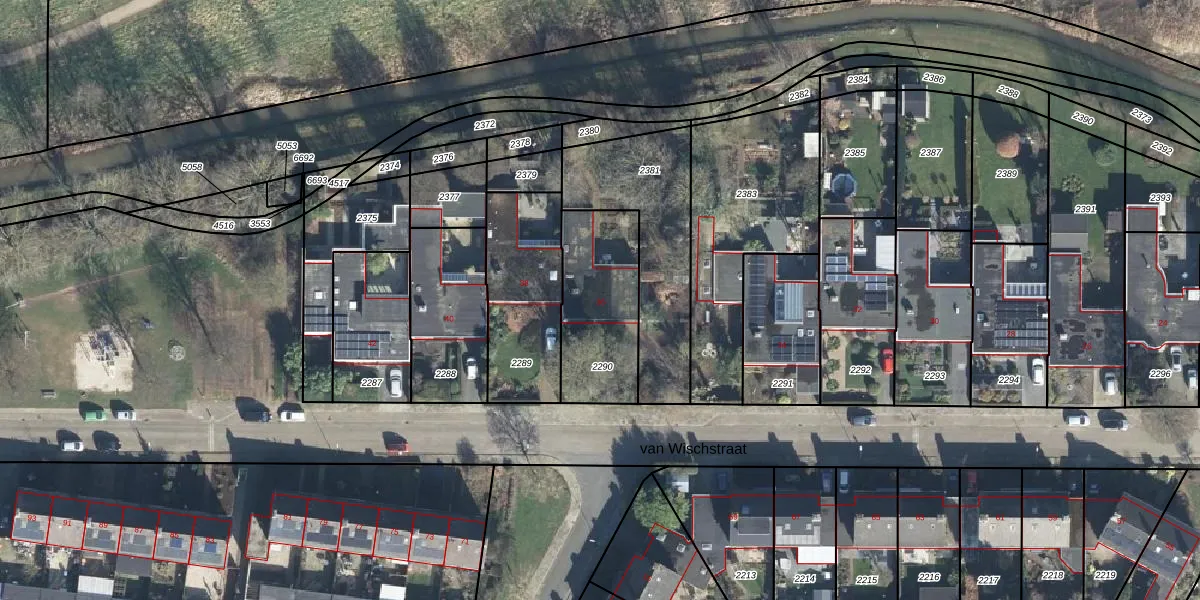 van Wischstraat 36 is gelegen op kadastraal perceel WIS00F2290. Deze kadastrale aanduiding is uniek en wordt gebruikt door het Kadaster om eigendomsrechten en andere zakelijke rechten vast te leggen. Het perceel maakt onderdeel uit van de kadastrale gemeente Wisch.