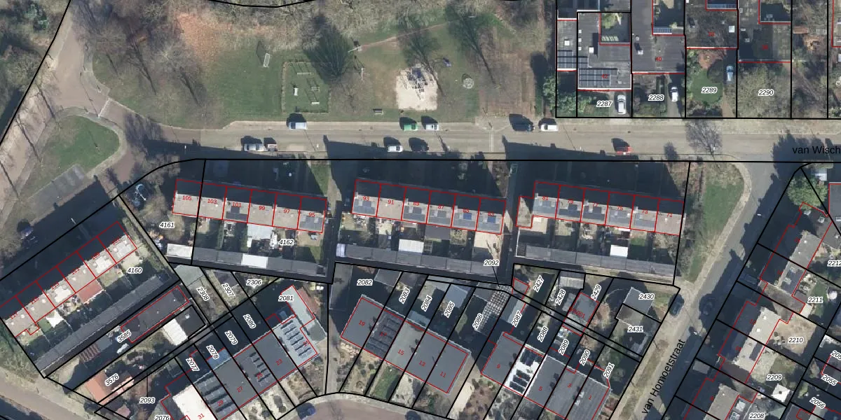 van Wischstraat 89 is gelegen op kadastraal perceel WIS00F4162. Deze kadastrale aanduiding is uniek en wordt gebruikt door het Kadaster om eigendomsrechten en andere zakelijke rechten vast te leggen. Het perceel maakt onderdeel uit van de kadastrale gemeente Wisch.