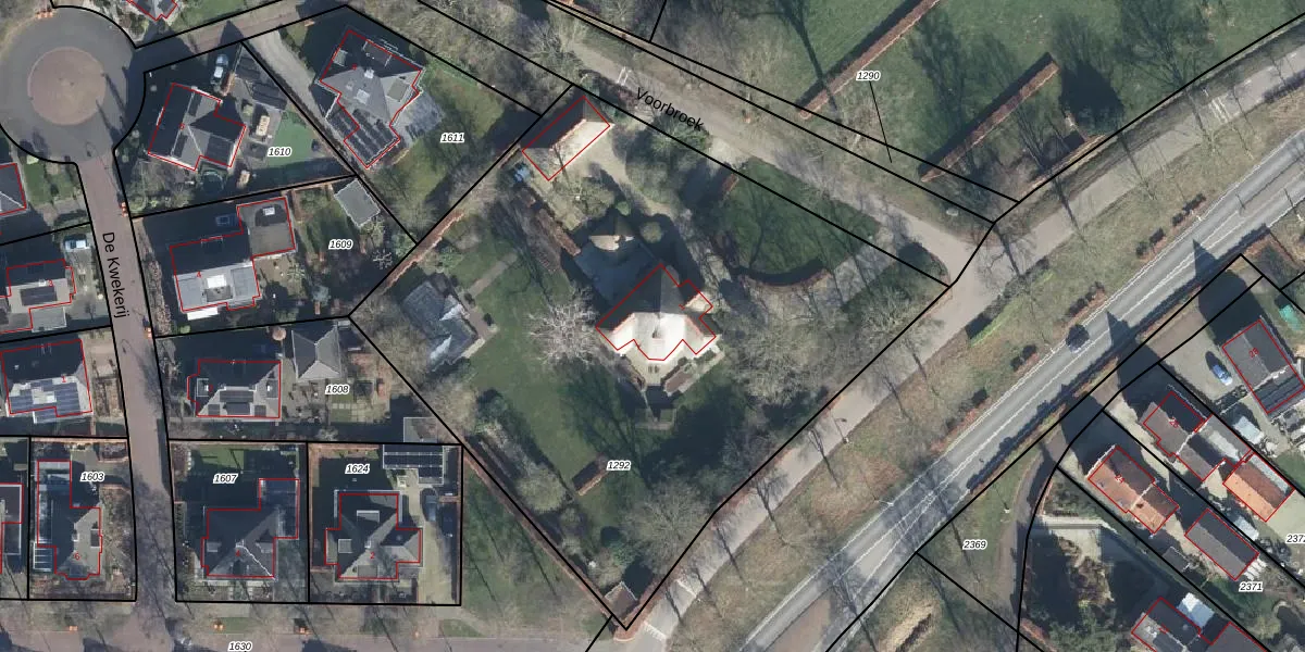Het perceel waarop Voorbroek 1 staat heeft een oppervlakte van 3730 m². Dit is een zeer groot perceel. De perceeloppervlakte wordt geregistreerd door het Kadaster. Gedetailleerde informatie over de maten van dit perceel kunt u vinden in het rapport Kadastrale kaart met maatvoering van Voorbroek 1.