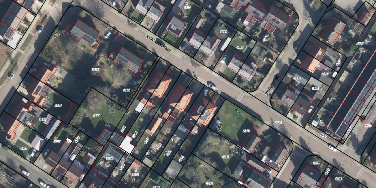 Het perceel waarop Vulcaanstraat 43 staat heeft een oppervlakte van 370 m². Dit is een groot perceel. De perceeloppervlakte wordt geregistreerd door het Kadaster. Gedetailleerde informatie over de maten van dit perceel kunt u vinden in het rapport Kadastrale kaart met maatvoering van Vulcaanstraat 43.