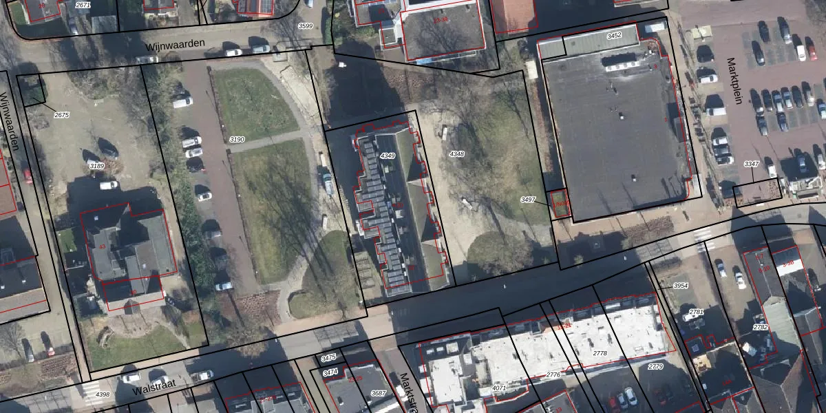 Het perceel waarop Walstraat 12 staat heeft een oppervlakte van 1000 m². Dit is een zeer groot perceel. De perceeloppervlakte wordt geregistreerd door het Kadaster. Gedetailleerde informatie over de maten van dit perceel kunt u vinden in het rapport Kadastrale kaart met maatvoering van Walstraat 12.